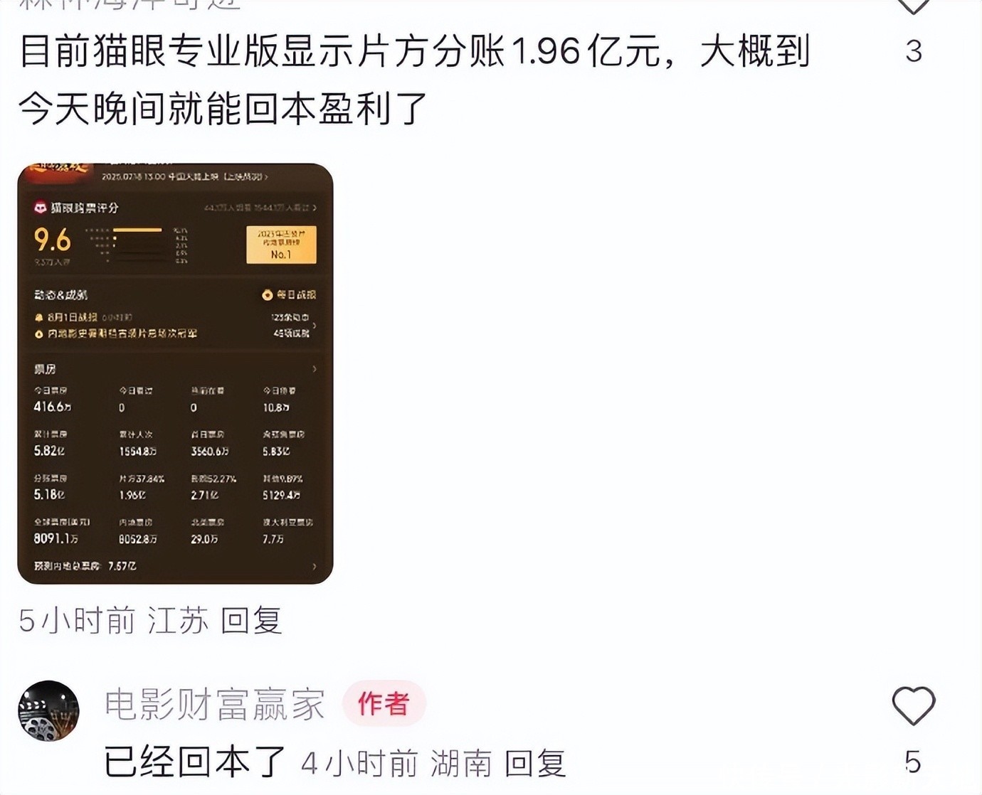 恰恰相反,期待大鹏赔钱、等着看他笑话的恐怕要失望了,因为《长安的荔枝》已经回本。