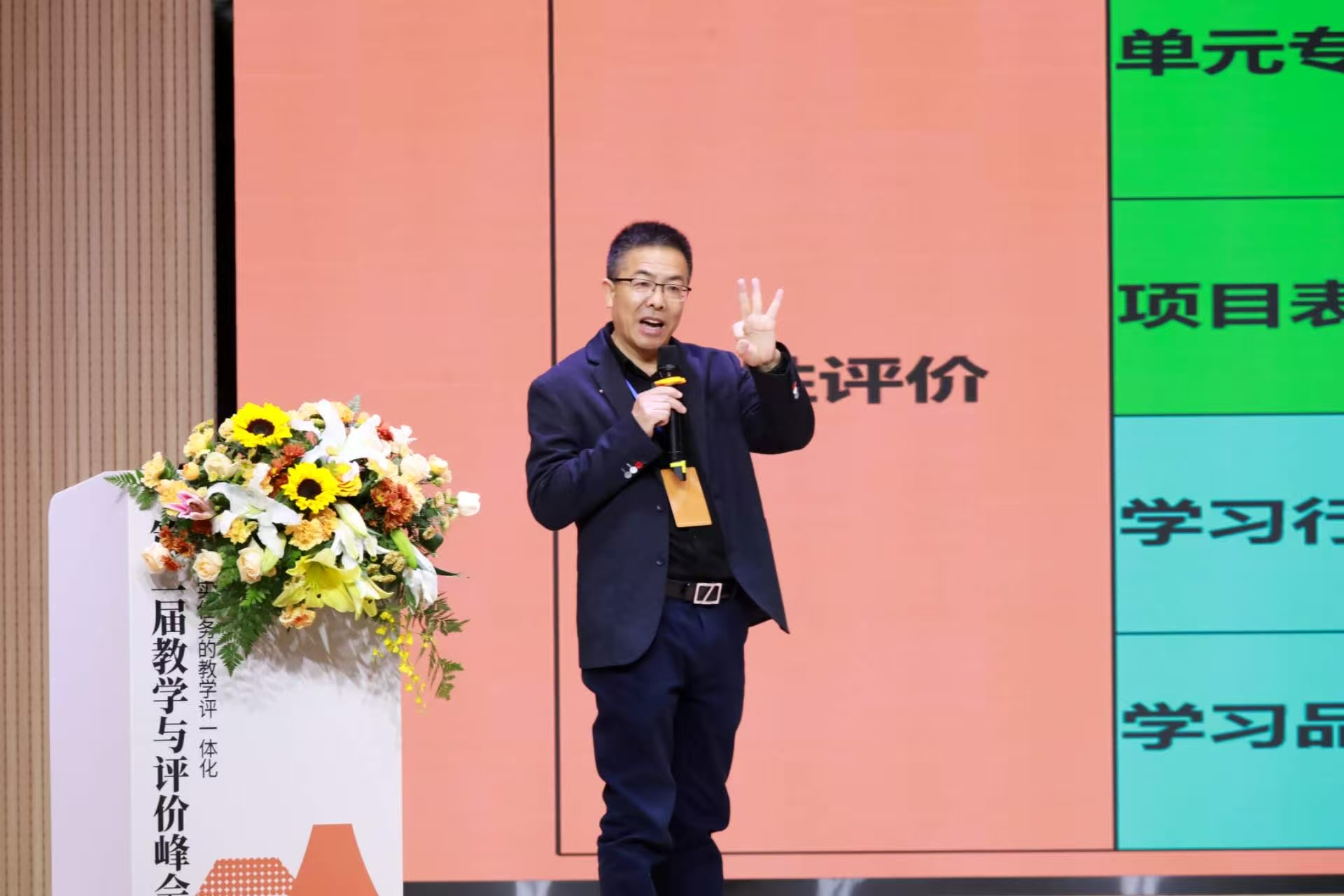 在第二届教育与评价峰会上,王旭东谈“新课标、新教材下,教师如何重塑评价理念与方法”